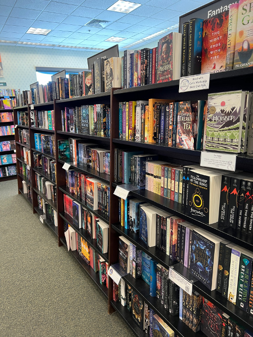 Take a look at this photo I took. This entire area is just a part of the fantasy books available. It is 4 shelving sections, and that’s not all of it. There are two more sections on the reverse side. Have a look for yourselves:
